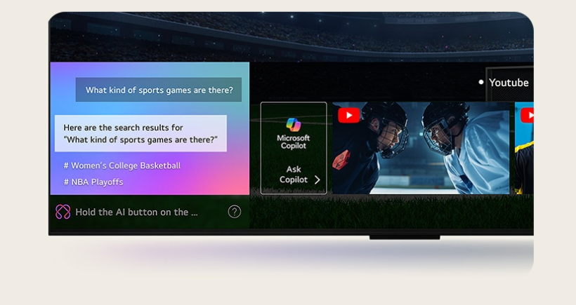 Hãy hỏi TV của bạn bất cứ điều gì. AI tích hợp nhận ra giọng nói và nhanh chóng đưa ra đề xuất cá nhân hóa cho yêu cầu của bạn. Bạn cũng có thể nhận thêm kết quả và giải pháp với Microsoft Copilot.