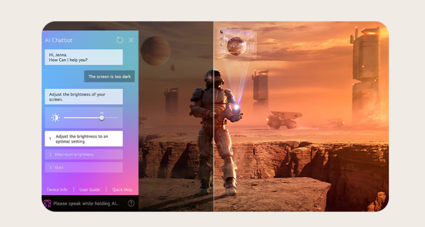 Tương tác với AI Chatbot thông qua AI Magic Remote và giải quyết mọi mối quan ngại từ cấu hình cài đặt đến khắc phục sự cố. AI có thể hiểu ý định người dùng và đưa ra các giải pháp ngay lập tức.