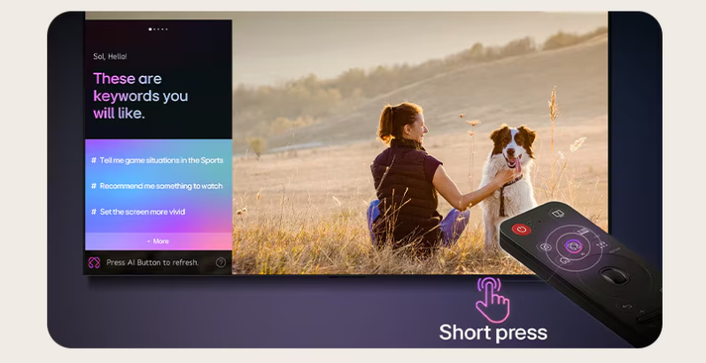Chỉ cần nhấn nhanh một lần vào nút AI trên điều khiển từ xa sẽ mở ra AI Concierge, cung cấp các từ khóa và đề xuất tùy chỉnh dựa trên lịch sử tìm kiếm và xem của bạn.