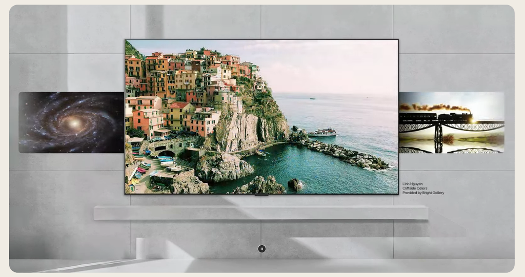Biến màn hình của bạn thành khung tranh sống động với 100 tác phẩm nghệ thuật, khung cảnh cuốn hút và video bao quanh. Cập nhật thư viện thường xuyên sẽ giúp không gian sống luôn thẩm mỹ, ngay cả khi không xem TV.