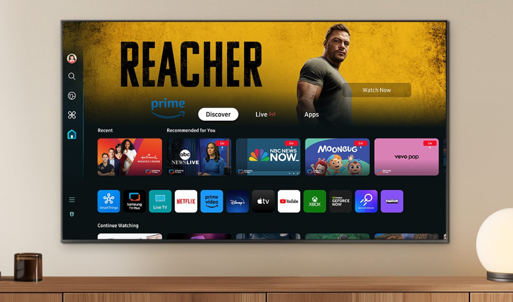 - Hệ điều hành One UI Tizen được thiết kế với giao diện trực quan, dễ sử dụng, giúp người dùng dễ dàng truy cập và điều khiển các tính năng của tivi.