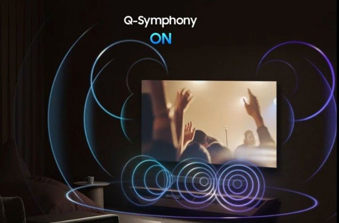 - Công nghệ Q-Symphony: Nhờ sự đồng bộ liền mạch giữa loa tivi với loa thanh mà bạn sẽ được thăng hoa cùng những âm thanh chân thực, sống động, bao trùm mọi giác quan.