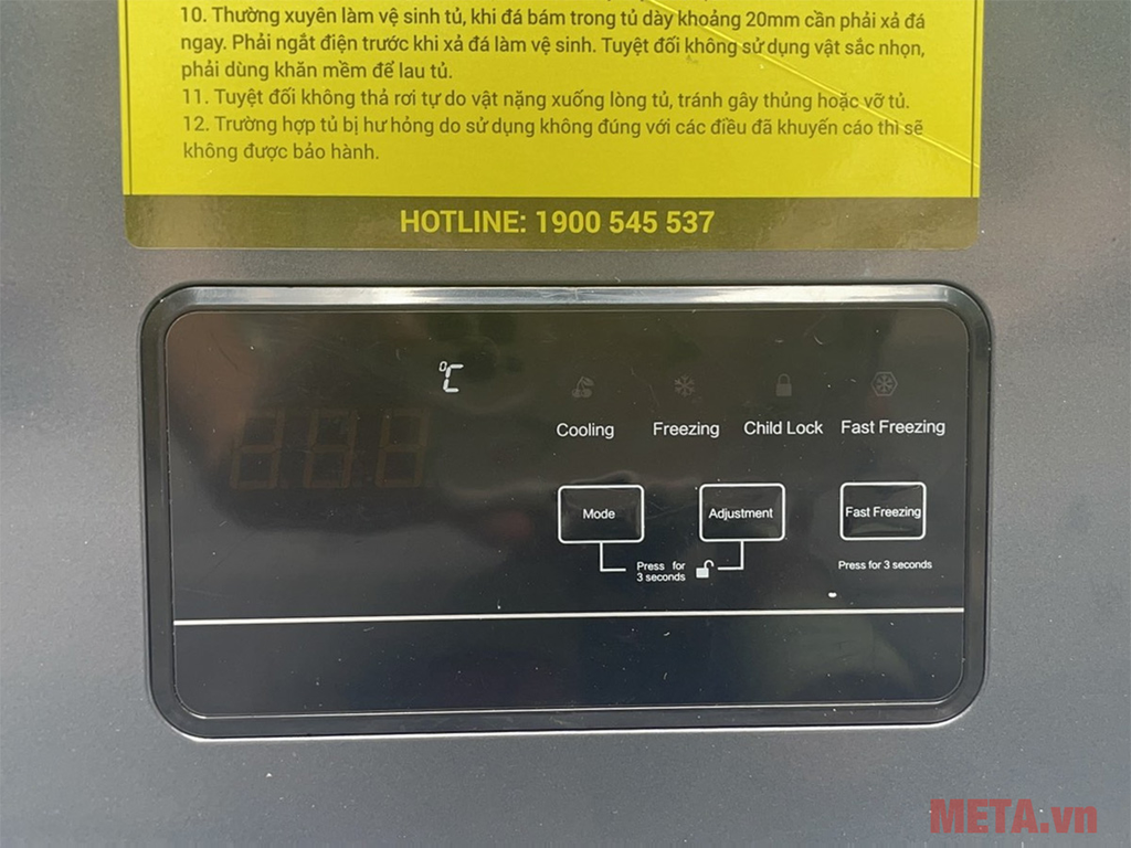 Tủ đông có bảng điều khiển điện tử giúp điều chỉnh nhiệt độ chính xác theo nhu cầu sử dụng từ -40 độ C đến 8 độ C.