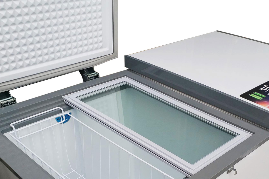 Cánh tủ còn trang bị thêm lắp kính lùa dễ dàng quan sát bên trong sẽ thuận tiện cho việc cất, lấy sản phẩm, đồng thời hạn chế thất thoát nhiệt ra ngoài.