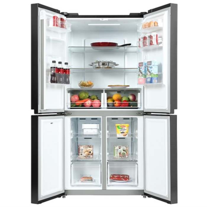 Tủ lạnh có thiết kế 4 cửa riêng biệt giúp người dùng dễ dàng phân loại và lấy thực phẩm mà không cần mở toàn bộ tủ, hạn chế thất thoát hơi lạnh và tiết kiệm điện năng. Bề mặt thép không gỉ màu đen không chỉ bền bỉ mà còn chống bám vân tay, dễ dàng vệ sinh.