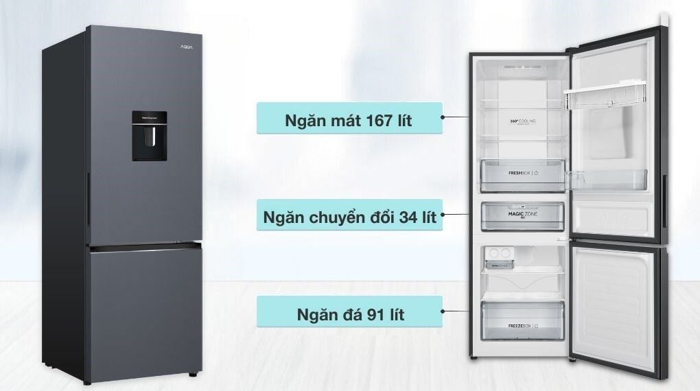 - Tủ lạnh Aqua có dung tích 292 lít đáp ứng được nhu cầu tích trữ và bảo quản thực phẩm cho gia đình có từ 2 - 3 thành viên.