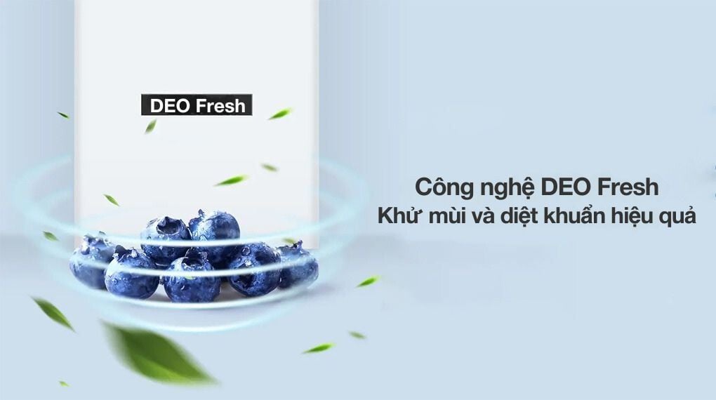 - Công nghệ DEO Fresh mang đến khả năng diệt khuẩn và khử mùi hiệu quả. Tạo ra môi trường bên trong tủ lạnh luôn tươi mát và sạch sẽ, góp phần bảo quản thực phẩm tươi ngon.