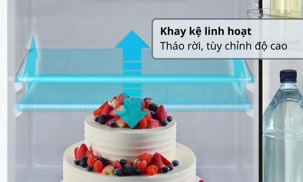 Ngoài ra, khay còn cho phép điều chỉnh lên xuống linh hoạt nhờ đi kèm với các nấc cố định ở nhiều mức. Từ đó, bạn có thể điều chỉnh độ cao để chứa nhiều loại thực phẩm với kích cỡ khác nhau.