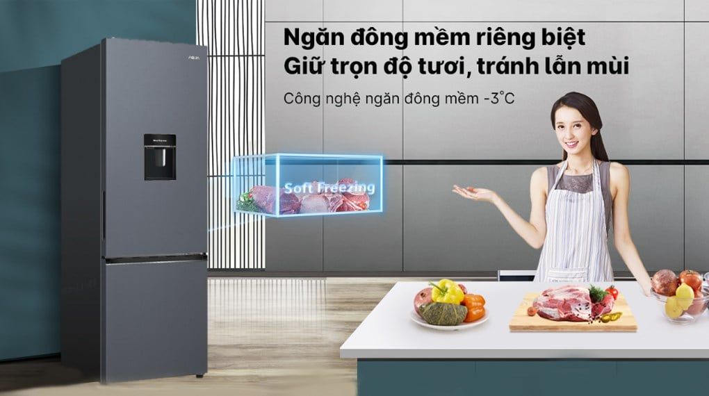 - Ngăn đông mềm trữ thịt cá không cần rã đông -3˚C: Được thiết kế riêng biệt và có khả năng bảo quản thực phẩm ở mức -3˚C, nhờ đó giảm thiểu tình trạng thực phẩm bị lẫn mùi, đồng thời duy trì được độ tươi ngon và giữ trọn dinh dưỡng tối ưu. Hơn nữa, việc bảo quản thực phẩm trong ngăn này còn tạo điều kiện cho bạn tiết kiệm thời gian chế biến mà không cần phải chờ rã đông thực phẩm quá lâu.