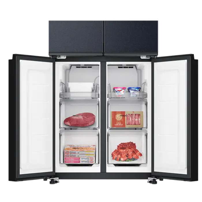 -Tủ lạnh Aqua với thiết kế Multi Door - 4 cánh hiện đại cung cấp không gian lưu trữ rộng rãi, giúp người dùng dễ dàng phân bổ và sắp xếp thực phẩm. Với thiết kế sang trọng, đây là điểm nhấn hoàn hảo cho không gian phòng bếp của gia đình.