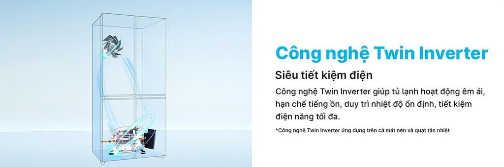 Công nghệ Twin Inverter không chỉ giúp máy hoạt động mạnh mẽ mà còn tiết kiệm điện năng đáng kể. Công nghệ này còn giúp giảm tiếng ồn phát ra từ máy, duy trì nhiệt độ ổn định, mang lại sự tiện lợi và tiết kiệm chi phí cho người dùng.Công nghệ Twin Inverter tiết kiệm điện