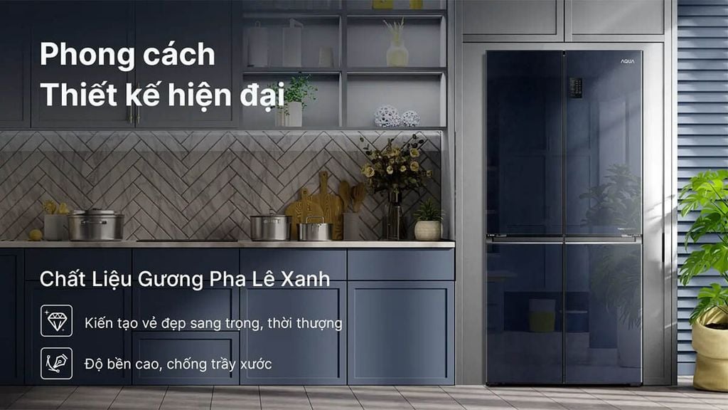 Tủ Lạnh Aqua Inverter 469 Lít AQR-M536XA(WGB) với chất liệu cửa tủ là mặt gương pha lê xanh tạo nên vẻ đẹp sang trọng, thời thượng cho không gian bếp của bạn. Không chỉ có vẻ ngoài lôi cuốn, tủ lạnh còn có khả năng chống trầy xước, mang đến độ bền cao trong quá trình sử dụng.