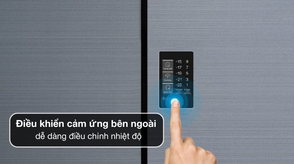 - Bảng điều khiển cảm ứng hiện đại đặt bên ngoài cửa tủ, dễ dàng điều chỉnh nhiệt độ và chế độ chỉ bằng vài thao tác chạm nhẹ.