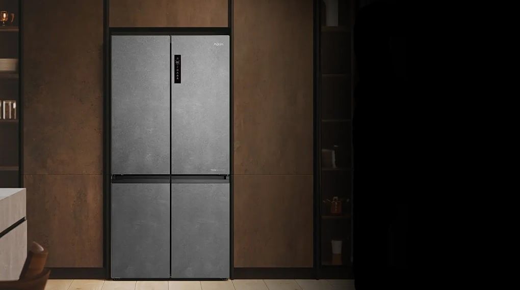 - Aqua AQR-M727XA(GS)U1 với kiểu dáng tủ lạnh Multi-Door cửa tủ có chất liệu mặt gương thiết kế vân đá, tay nắm cửa bằng hợp kim nhôm cho độ bền cao, thiết kế nằm ngang liền mạch góp phần giúp tủ lạnh thêm thanh lịch, dễ đóng mở.