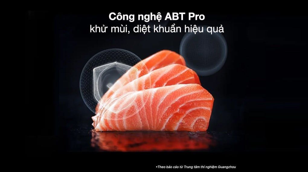 Với công nghệ ABT Pro, khi hệ thống làm lạnh vận hành, mô-đun ABT Pro xúc tác với không khí, tạo ra những hạt phân tử ion oxi âm phân hủy vi khuẩn, phân tử mùi với hiệu quả lên tới 99,99% giữ cho môi trường bảo quản thực phẩm trong lành và đảm bảo vệ sinh.