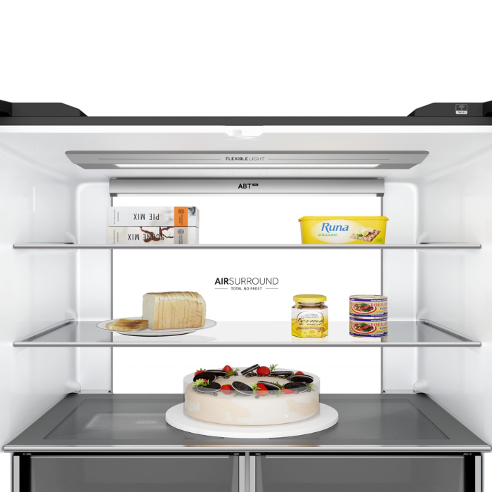 - Công nghệ làm lạnh đa chiều: hệ thống phân phối khí lạnh đồng đều theo dạng vòm cung, bao trọn thực phẩm trong toàn bộ ngăn tủ, giữ nhiệt độ ổn định, hạn chế thổi hơi lạnh trực tiếp vào thực phẩm nên tránh gây tình trạng mất nước, héo khô thực phẩm.