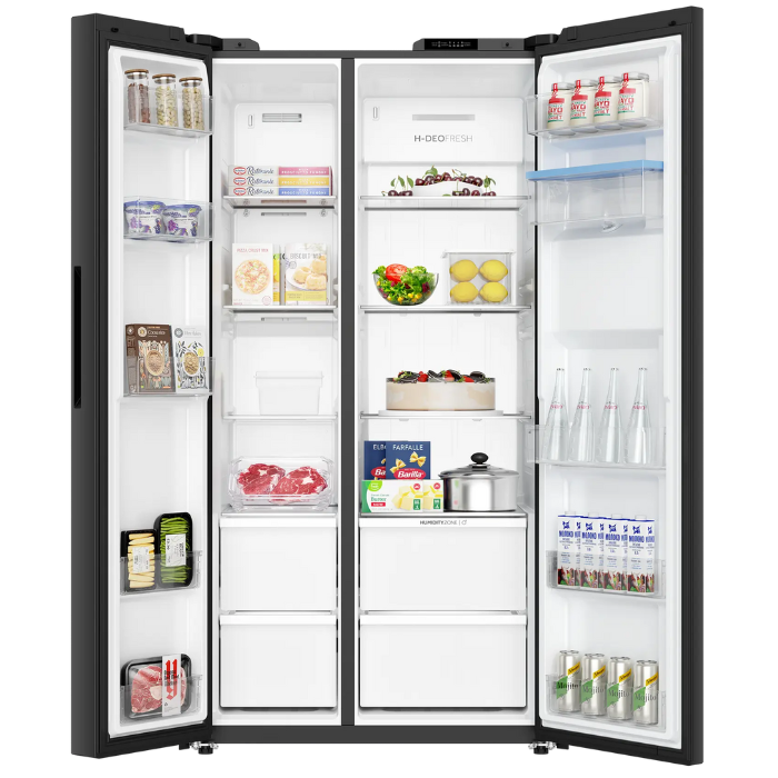 - Kiểu dáng Side by Side 2 cánh lớn đối xứng, giúp thao tác lấy thực phẩm dễ dàng, đặc biệt khi bảo quản số lượng lớn.