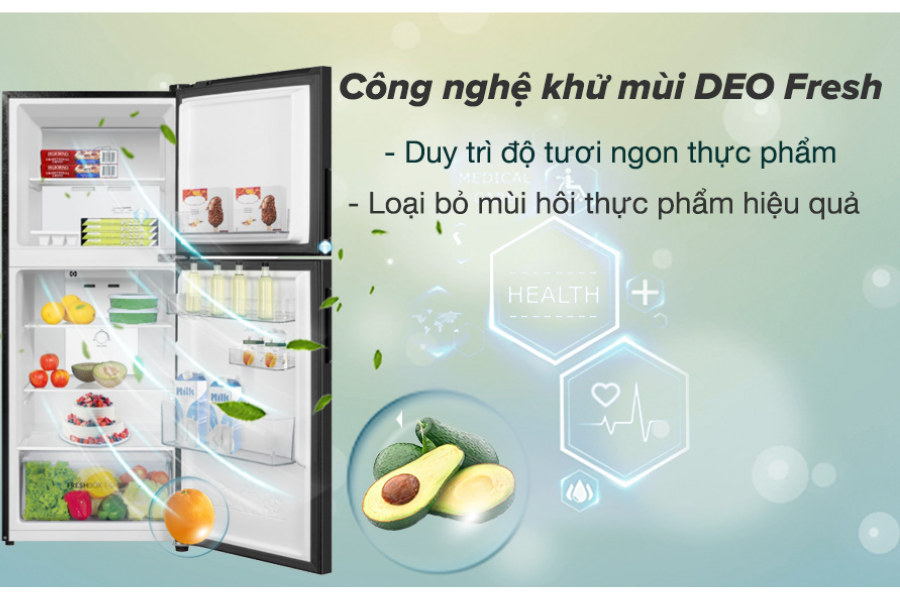 Kháng khuẩn khử mùi DEO Fresh: Có khả năng giải phóng ra các ion bạc để ức chế sự hoạt động của vi khuẩn và nấm mốc, nhờ đó duy trì độ tươi ngon thực phẩm tốt hơn và giảm thiểu mùi hôi xuất hiện bên trong tủ lạnh.