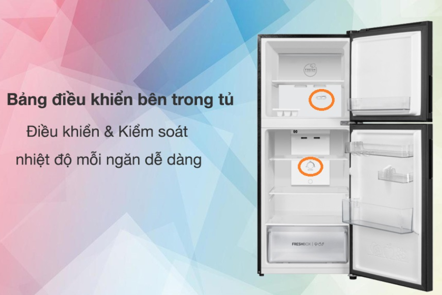 Bảng điều khiển được thiết kế bên trong mỗi ngăn tủ. Trong đó, ngăn đá sử dụng bảng điều khiển nút trượt trái phải và ngăn lạnh sử dụng bảng điều khiển bằng nút vặn. Bạn có thể thao tác dễ dàng mỗi khi sử dụng.