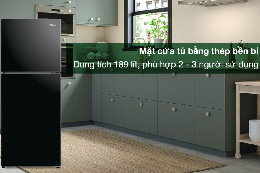 - Dung tích sử dụng của mẫu tủ lạnh Aqua này khoảng 189 lít, đáp ứng khả năng lưu trữ thực phẩm cho gia đình từ 2 - 3 người sử dụng.