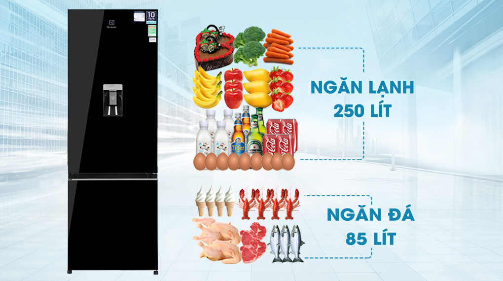Electrolux Inverter EBB3742K-H có dung tích 335 lít, trong đó ngăn đá 85 lít và ngăn lạnh 250 lít, đáp ứng nhu cầu bảo quản thực phẩm cho những gia đình từ 3 - 4 người. Tuy nhiên, với những gia đình ít thành viên hơn vẫn có thể sử dụng nếu như có nhu cầu dự trữ nhiều thực phẩm để sử dụng hoặc buôn bán.