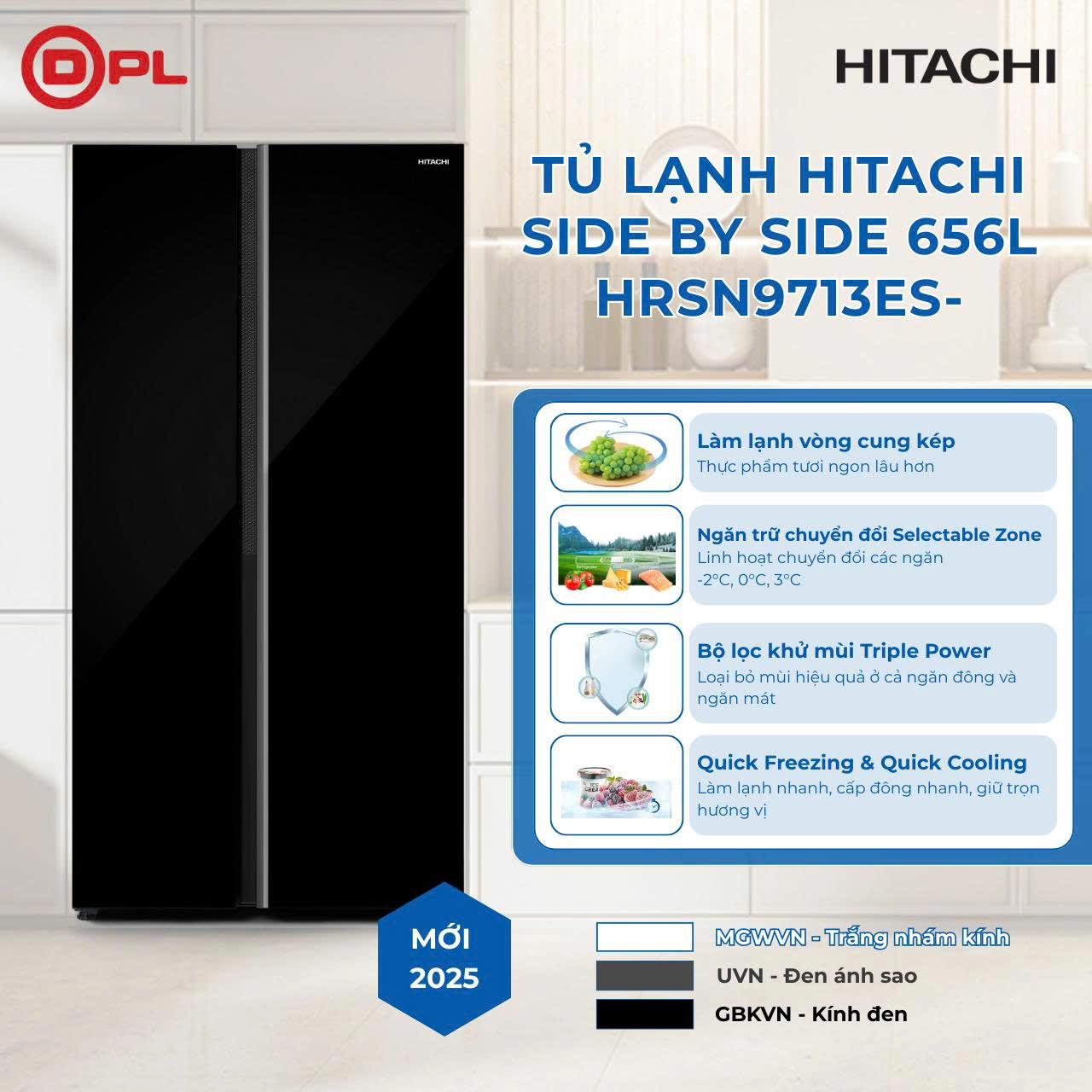 Tủ lạnh Side by side Hitachi Inverter 656 lít HRSN9713ESGBKVN