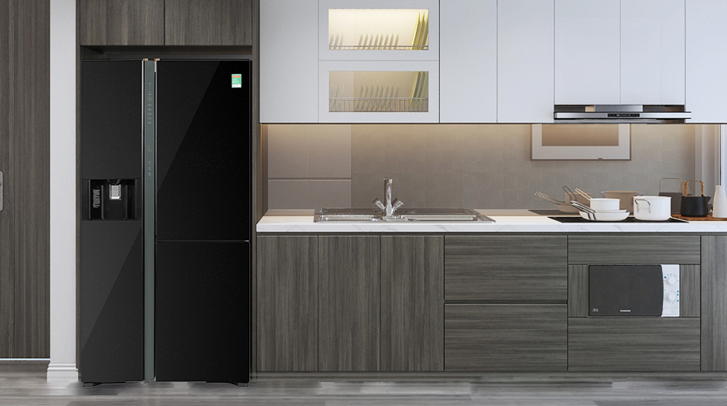 - Hitachi R-MX800GVGV0 GBK thuộc dòng tủ lạnh lớn - Side by side có 3 cánh cửa, thiết kế thanh lịch từ bên trong đến bên ngoài, các chi tiết tinh tế, tông màu xám thời thượng, tạo điểm nhấn cho gian bếp thêm cao cấp, hiện đại.