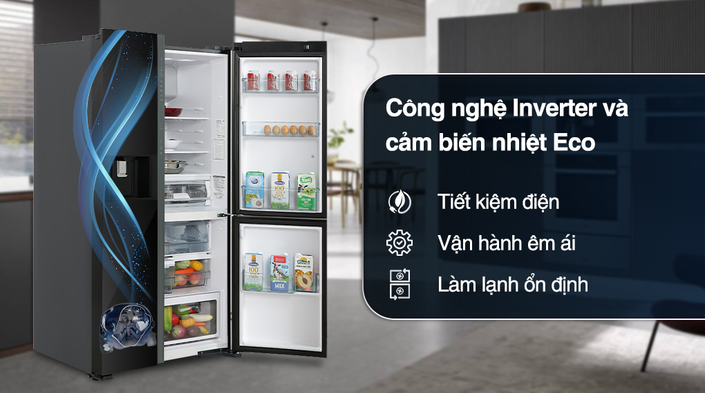 - Cảm biến nhiệt Eco: Trên ngăn đá và ngăn lạnh được trang bị cảm biến độc lập giúp duy trì mức nhiệt phù hợp cho từng ngăn trong mọi thời điểm, cho thực phẩm luôn tươi ngon.