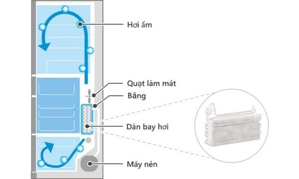 Với tính năng làm lạnh Tái Tạo Băng (Frost Recycling), không khí lạnh được tạo ra nhờ băng hình thành trong dàn bay hơi. Băng được tái tạo khi khí lạnh được đưa đến tất cả các ngăn để làm lạnh, thậm chí khi máy nén không hoạt động. Hệ thống này giúp hạn chế tiêu thụ năng lượng đáng kể.