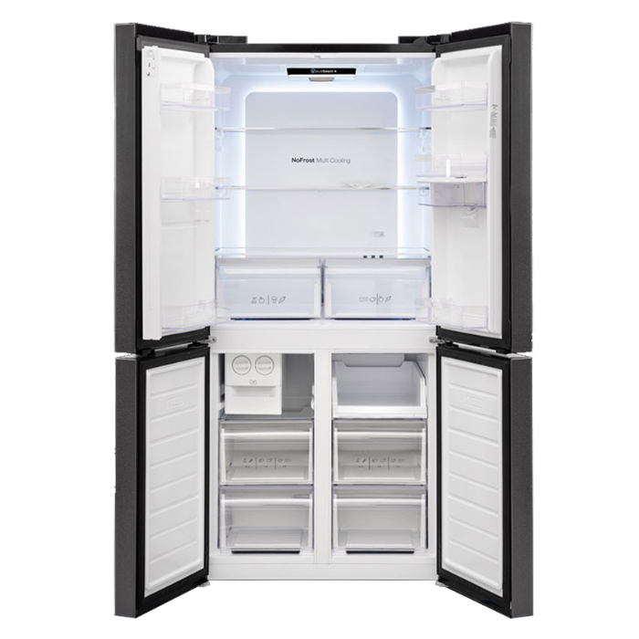 Tủ lạnh Kaff KF-BCD620DI có thiết kế hiện đại với hệ thống cửa 4 cánh cho phép người sử dụng dễ dàng phân loại thực phẩm và tiếp cận từng ngăn tủ.