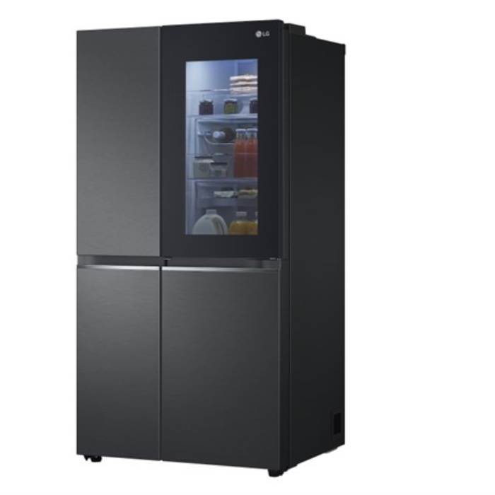 Tủ lạnh LG GR-Q257MC sở hữu thiết kế Side By Side 2 cánh với cửa kính InstaView sáng bóng, khi gõ hai lần lên cửa kính, bạn có thể dễ dàng quan sát thực phẩm bên trong mà không cần mở cửa, giúp giảm thất thoát hơi lạnh đến 41%. Màu đen sang trọng cùng chất liệu thép chống gỉ mang lại vẻ ngoài tinh tế, bền bỉ và dễ dàng vệ sinh, phù hợp với không gian bếp hiện đại.