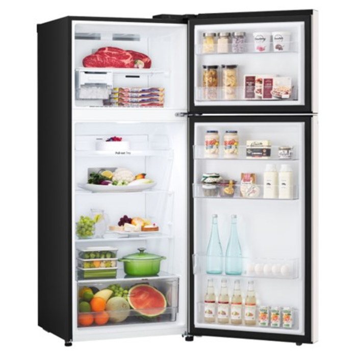 - Công nghệ Door Cooling: Tỏa khí lạnh từ khu vực cánh cửa tủ, giúp cho các loại đồ uống và thực phẩm đặt ở khu vực này được làm lạnh nhanh chóng, đồng thời góp phần làm lạnh toàn diện cho tất cả thực phẩm được bảo quản bên trong các ngăn tủ lạnh LG 395 lít này.