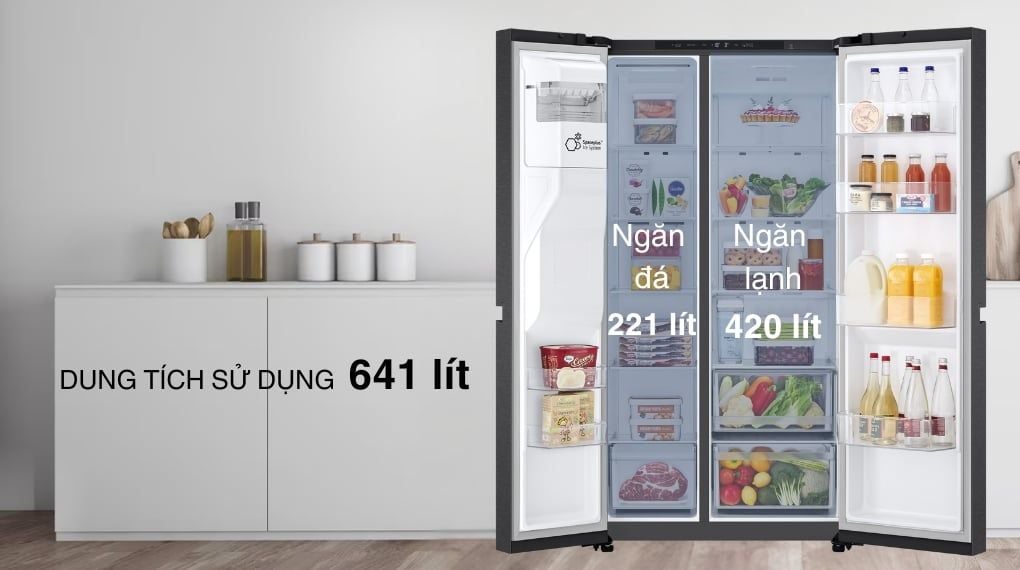 có kiểu dáng Side by Side hiện đại, dung tích sử dụng 641 lít phù hợp với gia đình trên 5 thành viên. Tủ được trang bị công nghệ làm lạnh LINEARCooling duy trì nhiệt độ ổn định, luồng khí lạnh đa chiều Multi Air Flow đem lại hiệu suất làm lạnh nhanh, bộ lọc khử mùi than hoạt tính hỗ trợ khử mùi hiệu quả.