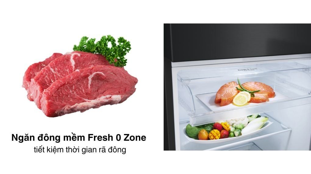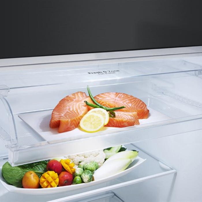 - Ngăn Fresh 0 Zone giúp các loại thực phẩm tươi sống được bảo quản ở nhiệt độ 0°C trong 24 giờ. Thiết kế hộp kín của ngăn chứa này còn giúp tránh lẫn mùi thực phẩm.