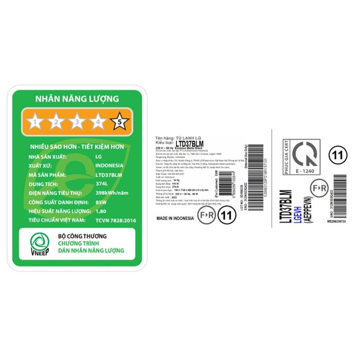 - Dung tích sử dụng 374 lít phù hợp với các gia đình từ 3 - 4 thành viên.