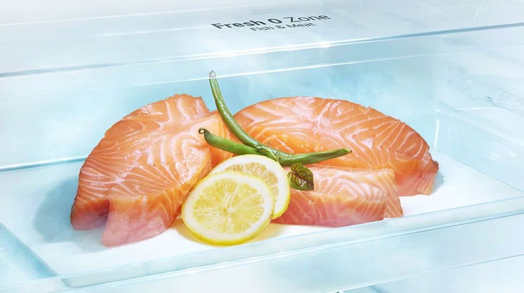 - Trang bị ngăn Fresh 0 Zone bảo quản hiệu quả các loại thực phẩm tươi sống như thịt, cá mà không cần rã đông.