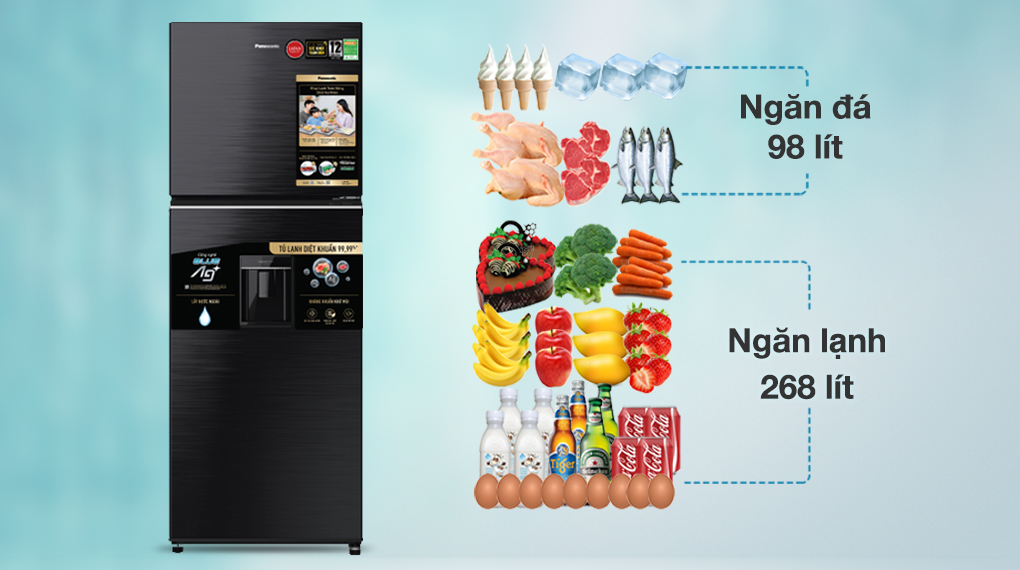 - Dung tích 98 lít, hãng Panasonic thiết kế với các ngăn, kệ chia không gian ngăn đá thành nhiều khu vực để bạn cất giữ các thực phẩm đông lạnh thuận tiện.