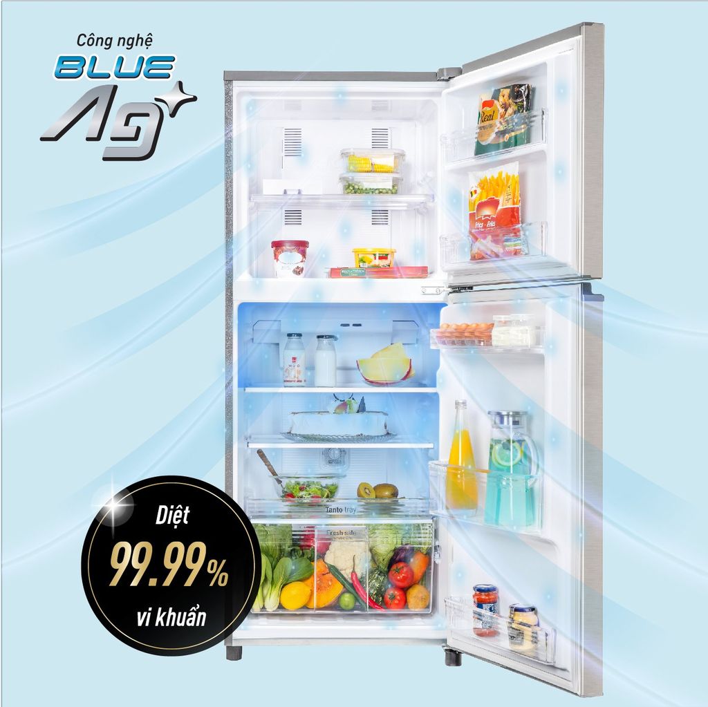 Công nghệ Blue Ag+ lần đầu tiên được Panasonic trang bị trên dòng sản phẩm tủ lạnh ngăn đá trên TV mới, giúp diệt tới 99,99% vi khuẩn trên toàn bộ ngăn mát tủ lạnh, giúp thực phẩm luôn tươi ngon và giữ trọn dinh dưỡng.