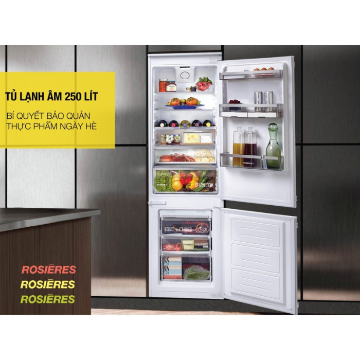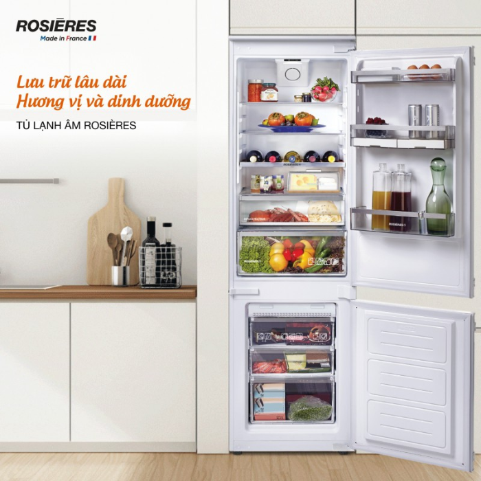 Tủ lạnh Inverter mang đến hiệu quả tiết kiệm điện đáng kinh ngạcTủ lạnh Rosieres RBBF178T này được trang bị công nghệ máy nén biến tần Inverter, nhờ vậy tủ có thể vận hành vô cùng êm ái, duy trì độ lạnh thích hợp cho thực phẩm nhưng vẫn mang lại hiệu quả tiết kiệm điện đáng kinh ngạc cho bạn.Công nghệ làm lạnh đa chiều nhanh chóng mang hơi lạnh đến từng ngóc ngách của tủ