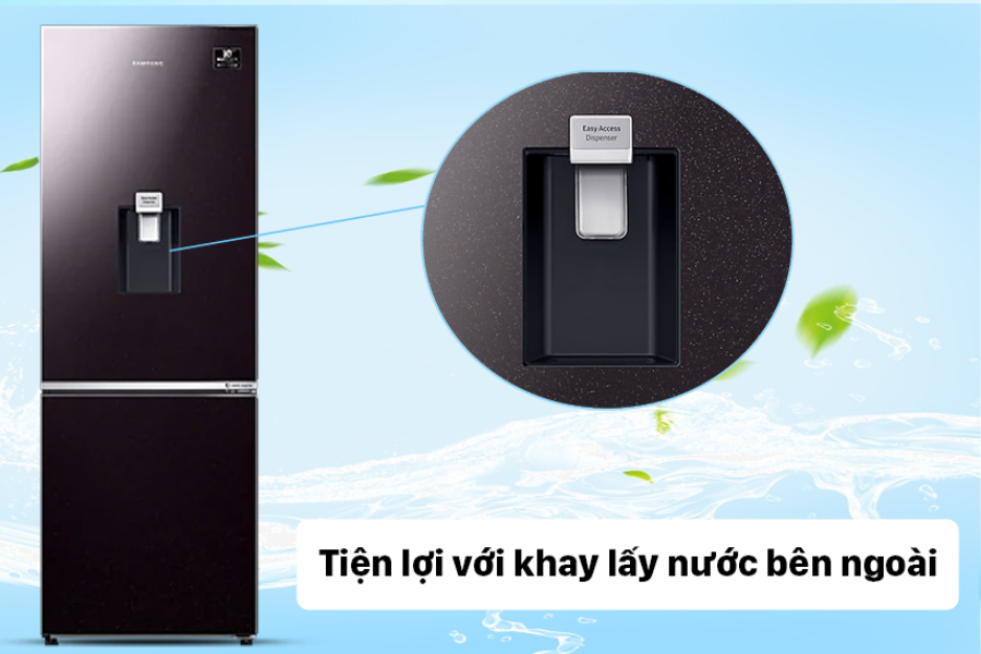 Tủ lạnh còn có thiết kế với khay lấy nước ngay trên cửa tủ, tiện lợi lấy nước uống mà không cần mở cửa tủ nhiều lần, tránh làm thất thoát hơi lạnh.