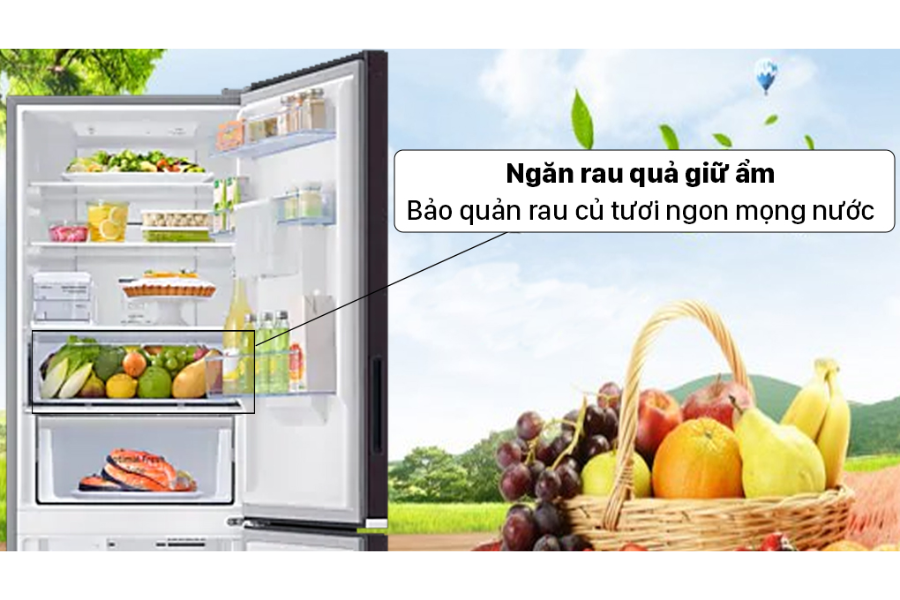 Với người yêu thích rau quả, thì chiếc tủ lạnh sẽ hỗ trợ đắc lực để bảo quản chúng tươi ngon lâu dài với ngăn rau quả giữ ẩm, vì ngăn này có khả năng tự cung cấp độ ẩm phù hợp với rau quả để đảm bảo tính tươi ngon, chất lượng.