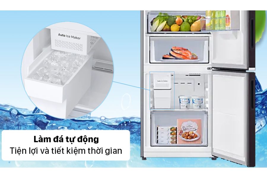 Thiết kế với khay làm đá tự động, chỉ cần đổ nước vào hộc chứa, đá viên sẽ được làm liên tục và có thể sử dụng ở bất kì lúc nào.