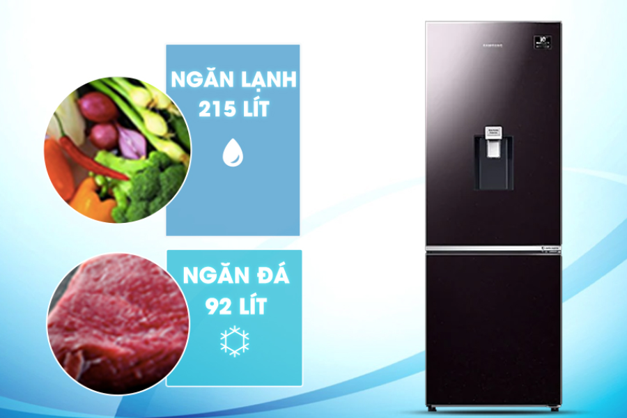 Chiếc tủ lạnh này có dung tích ngăn lạnh là 215 lít và ngăn đá là 92 lít nên phù hợp để bảo quản thực phẩm cho gia đình từ 3 – 4 thành viên.