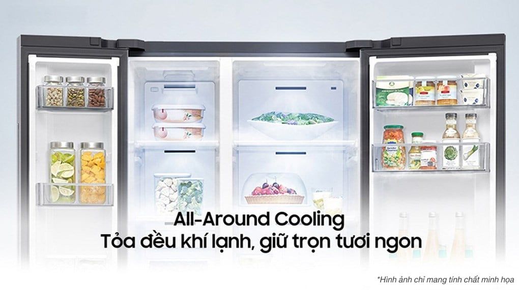 - Công nghệ làm lạnh vòm All-around Cooling duy trì nhiệt độ đồng đều tại mọi ngóc ngách trong tủ, giữ thực phẩm luôn tươi mới.