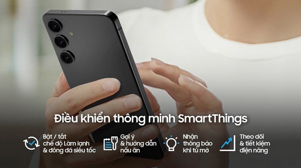 - Ứng dụng SmartThings hỗ trợ quản lí tủ từ xa qua smartphone, cảnh báo khi cửa mở quá lâu hoặc cần tối ưu điện năng.
