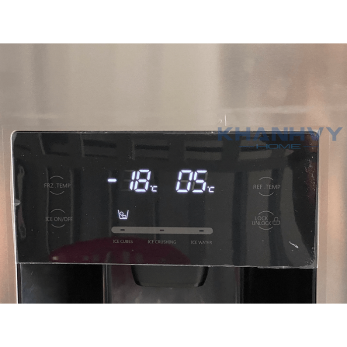 - Thiết kế Icemaker and water dispensor giúp tự động lấy đá ngoài, nước ngoài tiện lợi mà không cần mở cửa tủ.