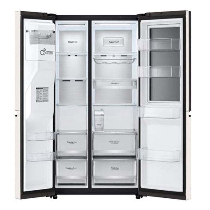 Tủ lạnh LG GR-X257BG sở hữu thiết kế Side by Side 2 cánh với cửa phụ InstaView Door-in-Door giúp quan sát thực phẩm bên trong chỉ bằng thao tác gõ 2 lần, hạn chế mở cửa tủ nhiều lần, giảm thất thoát hơi lạnh và tiết kiệm điện. Màu be tinh tế, bề mặt thép không gỉ cao cấp, chống bám vân tay và dễ dàng lau chùi.