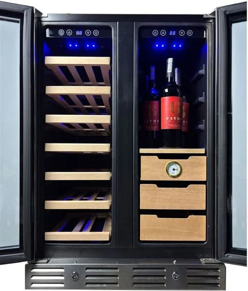 Hệ thống Dual Zone (2 vùng nhiệt độ độc lập): Mỗi ngăn (rượu vang và xì gà) có thể được cài đặt nhiệt độ riêng biệt trong dải rộng từ 5°C – 22°C. Điều này cực kỳ quan trọng vì rượu vang và xì gà đòi hỏi điều kiện bảo quản rất khác nhau, đảm bảo mỗi loại đều được giữ ở trạng thái tốt nhất.