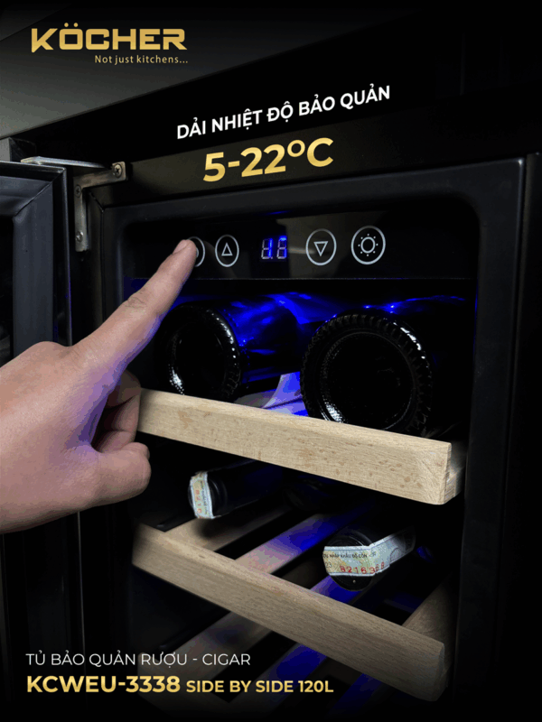Dựa trên thông số kỹ thuật đã phân tích, tủ rượu vang Kocher KCWEU-3338 có những đặc điểm nổi bật sau, đặc biệt là khả năng tích hợp độc đáo 2 trong 1: