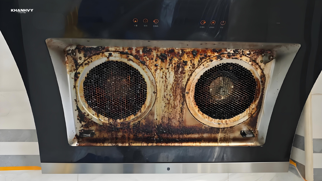 Lâu ngày, chúng không chỉ làm giảm hiệu suất hút mà còn là môi trường thuận lợi cho vi khuẩn và nấm mốc phát triển, gây mùi hôi khó chịu và ảnh hưởng chất lượng không khí trong bếp.
